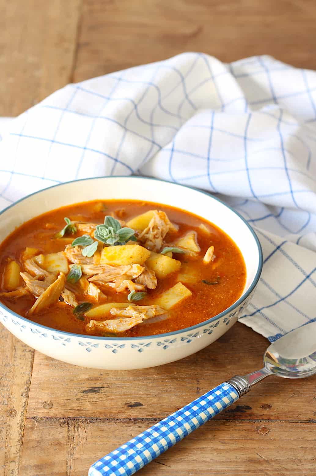 Tijdens onze vakantie in Portugal, waar jullie nog een uitgebreid reisverslag van krijgen, ontstond bij mij het idee voor deze piri-piri kippensoep. Wat nou als ik alle ingrediënten van kip piri-piri zou combineren tot een maaltijdsoep? En dan niet alleen de kip met de marinade, maar ook de tomaten, ui en oregano van de salade én de aardappels waar de frietjes van gemaakt worden?
