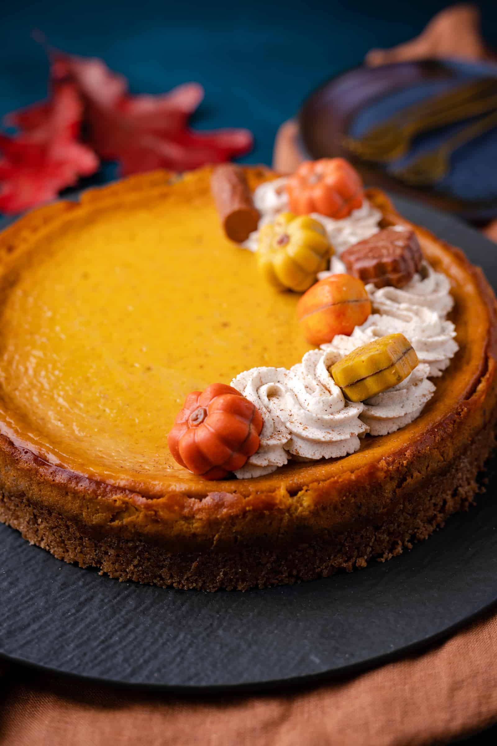 In dit seizoen vind ik het fantastisch om te bakken met pompoen. Maar wat ik nog steeds niet had gemaakt, was een pompoencheesecake. Nou, daar heb ik me in vastgebeten met deze prachtige en ontzettende lekkere cheesecake als resultaat.