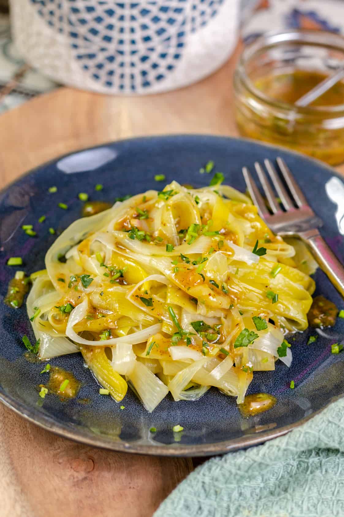 Als de prei van de barbecue komt, snijd je de stengels in de lengte open en kun je de gare prei zo uit de buitenste (zwarte geblakerde) schil halen met een vork of tang. Die buitenste schil gooi je weg en van de gare prei kun je een heerlijke preisalade maken met een kruiden vinaigrette. Zalig als bijgerecht bij de barbecue of om te combineren met andere geroosterde groenten. Het recept vind je hieronder!