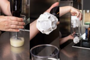 - Zowel de slagroom als eiwit heb ik binnen een halve minuut opgeklopt ermee.