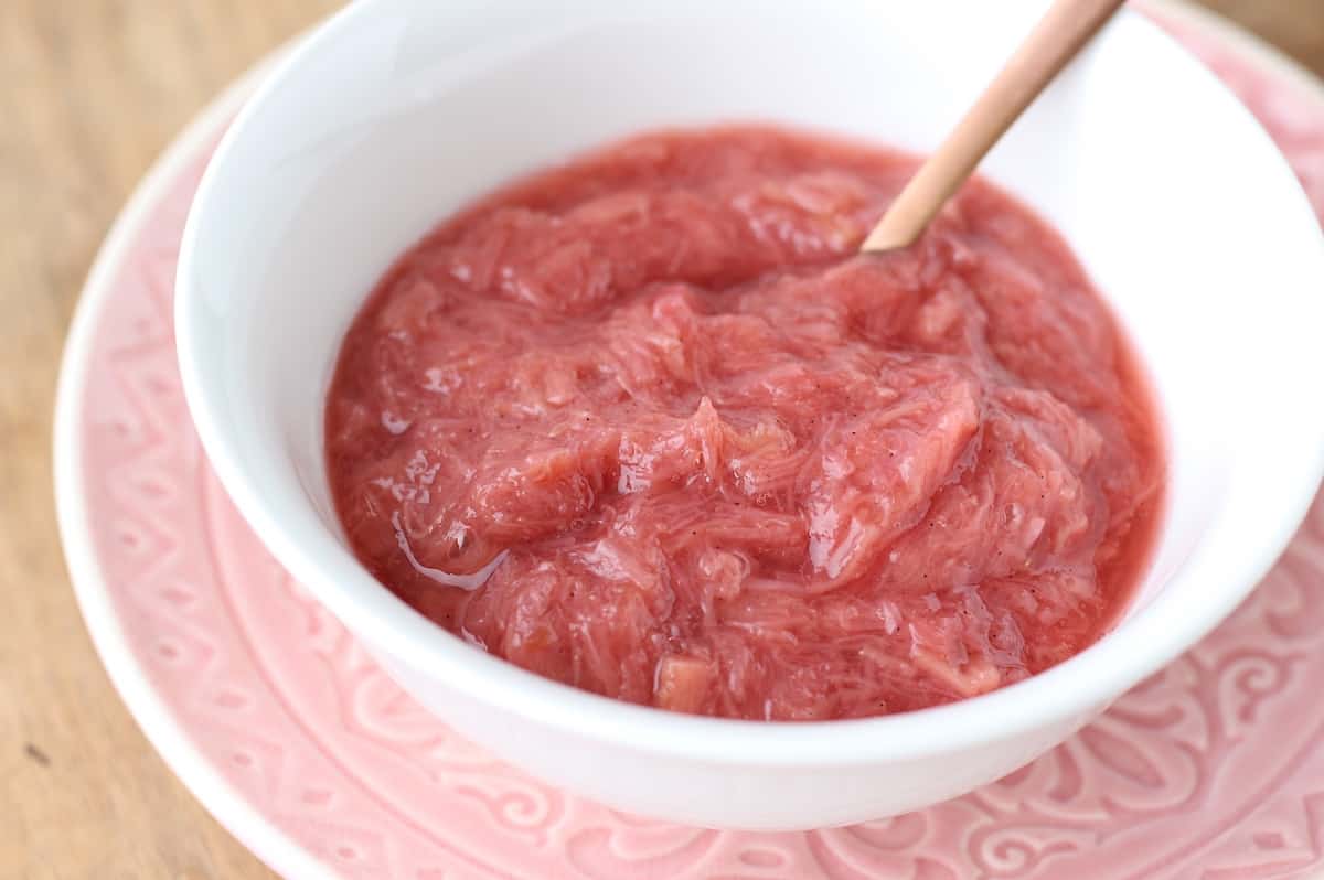 4. Bewaar de rabarber compote afgedekt in de koelkast, deze blijft zo zeker nog 4 dagen goed.