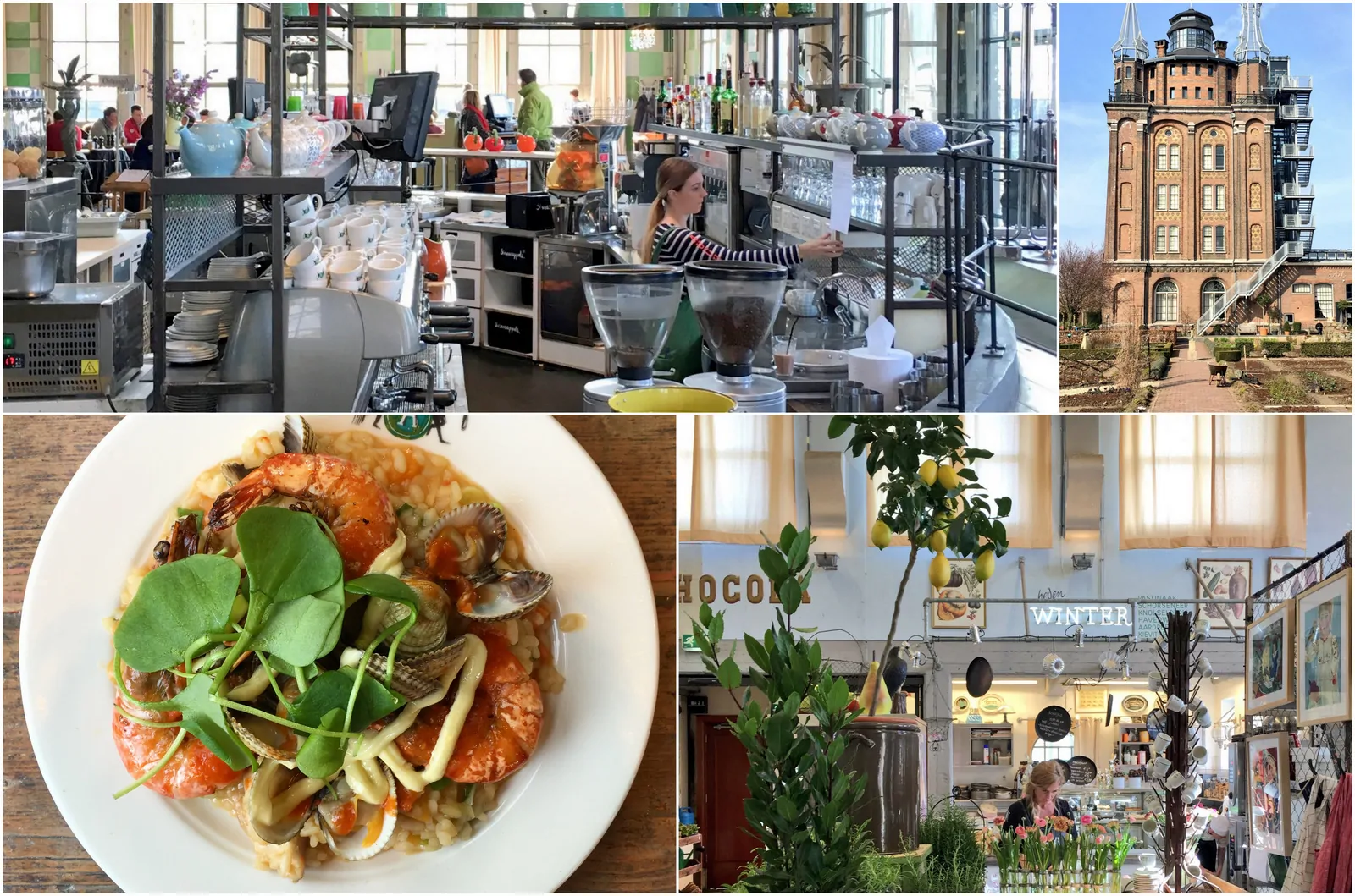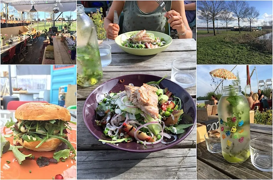 Binnen zit je namelijk in een kas waardoor er super veel licht binnenkomt en je lekker naar buiten kunt kijken. Er is een hele vrije sfeer, zo kun je ook je haar laten knippen in de hoek van het restaurant. Dat is de werkplek van de kapster. Weer eens wat anders! Buiten is de sfeer net zo en het is ook echt een paradijs voor kinderen. Genoeg te spelen en te beleven. Ook voor de volwassenen trouwens, zo kun je een aantal keer in de zomer genieten van ‘film aan het water’ waarbij je vanaf het terras op een groot scherm met z’n allen naar een film kijkt. Daarnaast zijn er ook zeer frequent muzikale optredens of ondernemingen zoals een fotografiecursus of yogasessie. Een levende plek is het zeker.
