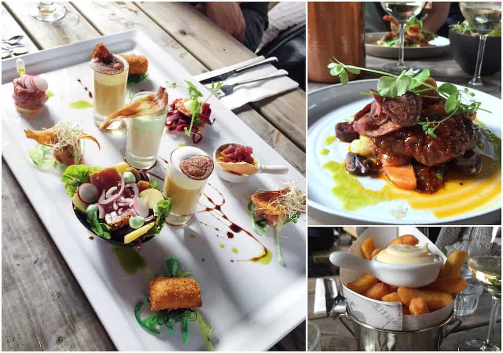 En de hoofdgerechten dan? Je kunt natuurlijk zoveel voorgerecht hapjes bestellen als je wil (ze hebben trouwens ook oesters) dus daar kun je prima de avond mee vullen. Maar vaak kan ik de verleiding niet weerstaan om ook een hoofdgerecht te bestellen. Al is het alleen om de heerlijk knapperige frieten die je erbij geserveerd krijgt. De hoofdgerechten zijn stuk voor stuk goed bereid, het vlees is mals en de vis sappig. De garnituren zijn seizoensgebonden en matchen goed met de gerechten. De sausjes maken de gerechten echt af.