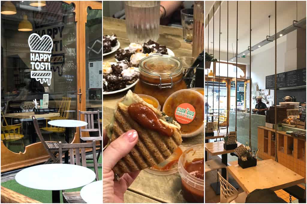 Happy Tosti, Korte Poten 5, Den Haag. Overdag geopend van maandag t/m zondag en doordeweeks al vanaf 07.30 uur.