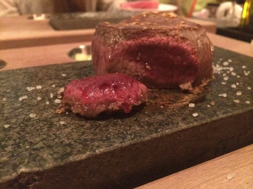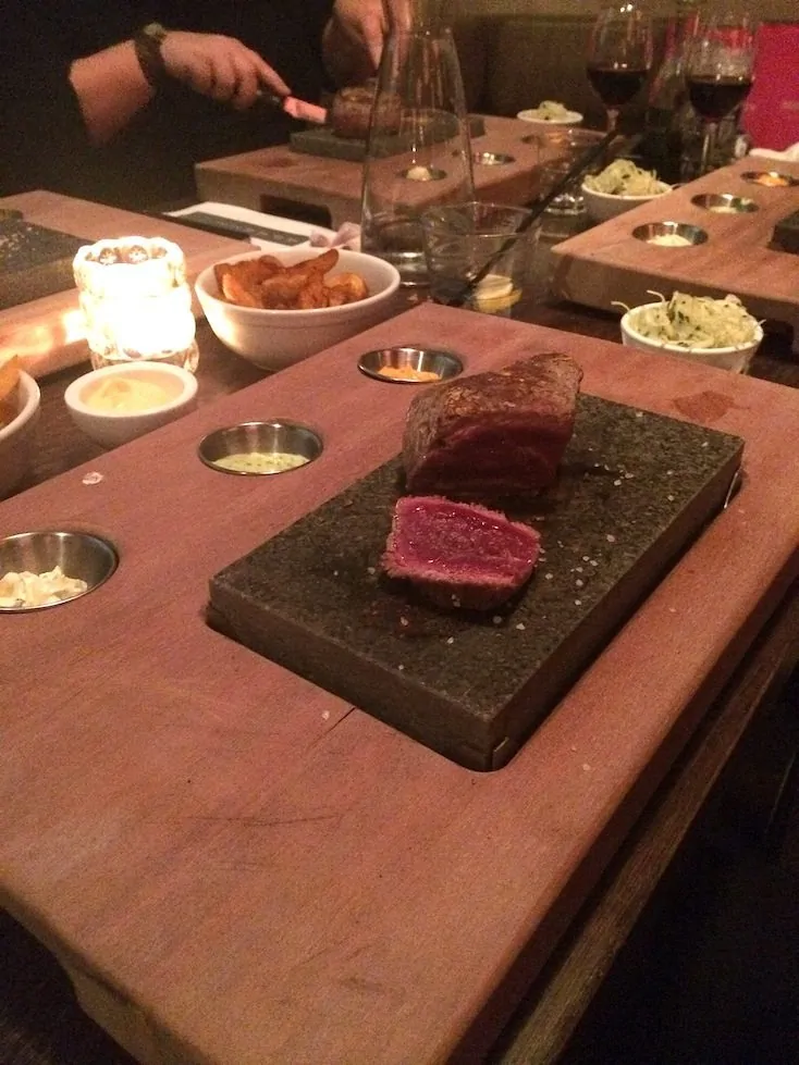 Goede vlees en vis, die zelfs rauw te eten is en op unieke wijze bereid op een steen die tot wel 400 graden wordt verhit, daar kunnen we dus nu allemaal van genieten in Rotterdam. Nadat wij het heerlijke voorgerecht hadden verorberd waren mijn verwachtingen hooggespannen. Het vlees wordt bereid zonder toevoeging van olie of boter, alleen met zeezout. Zou dit werkelijk zo goed kunnen zijn?
