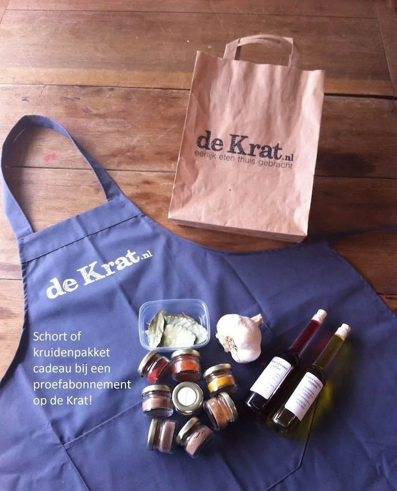 Wil je een proefabonnement op De Krat? Dan krijg je nu een schort en kruidenset cadeau!