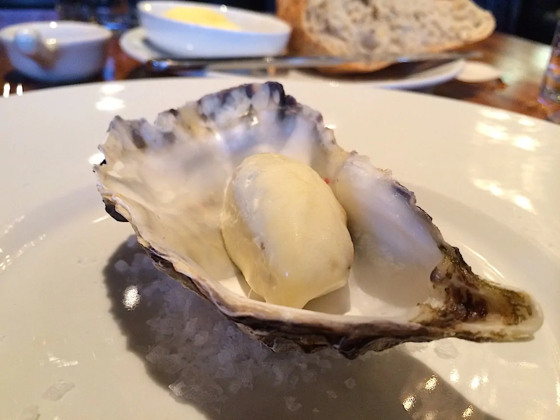 Onze culinaire ontdekkingstocht begon met een amuse om de ‘smaakpapillen te openen’; een oester met witte chocolade. Niet alleen openden mijn smaakpapillen, ze ontploften ook bijna en ik heb het voor de helft laten staan. The Mr. had er een stuk minder moeite mee dus laten we het erop houden dat het niet mijn smaak was.