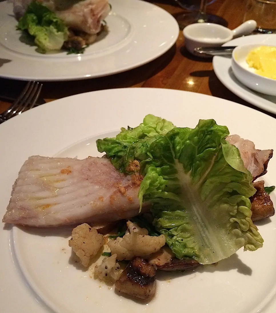 Als hoofd kregen we de Noordzee rogvleugel met bloemkool, zeekraal en notenboter geserveerd met een glas Salentein Chardonnay van meneer Pon (en zo is het sprookje weer rond). Het gerechtje was puur en smakelijk. Maar niet memorabel en ook wat vet, waardoor we het gevoel kregen dat we niet het beste van de kaart hadden geproefd.