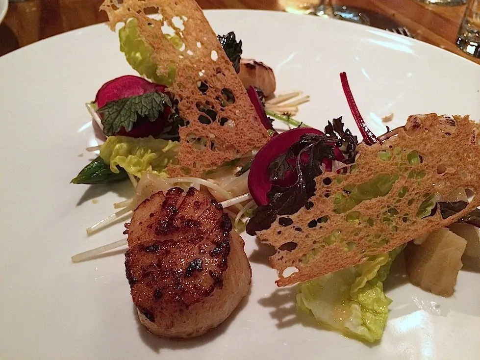 Dan bestellen we dus gewoon nog een gerechtje, zo zijn wij. Gelukkig maar, want toen kwam de topper van de avond. De gebakken coquille met artisjokken, meiknol, groene asperge en Hollandse kropsla liet ons even zweven. The Mr. at met een gelukzalige glimlach en ook ik was volledig in mijn element.