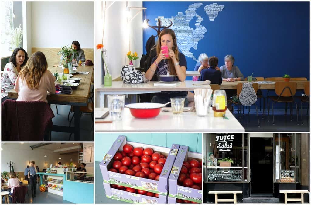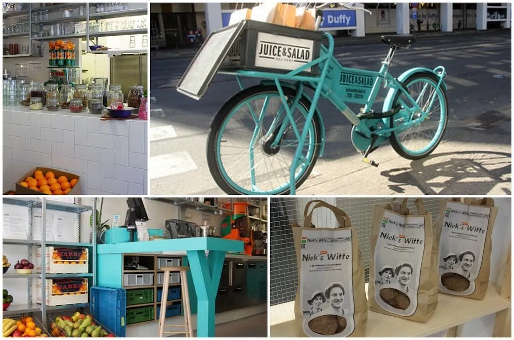 Oprichters Nick & Michiel zijn opgegroeid in de Noordoostpolder en hebben een aangeboren liefde voor verse agrarische producten. Michiel heeft zelfs nog een biologisch-dynamische boerderij en dit is de basis van hun Juice & Salad Café. Inmiddels een keten, want ze hebben onlangs de derde vestiging in Amsterdam geopend. De inrichting van Juice & Salad is no nonsense en licht. De menukaart sluit hierop aan, want hier vind je geen hoogdravende en ingewikkelde gerechten op de kaart. Gewoon ‘good food’. Van uitsluitend verse en natuurlijke ingrediënten maken zij de lekkerste en gezondste groente- en fruitsappen, lunch- en maaltijdsalades, sandwiches, heerlijk gezonde ontbijtjes en meer.
