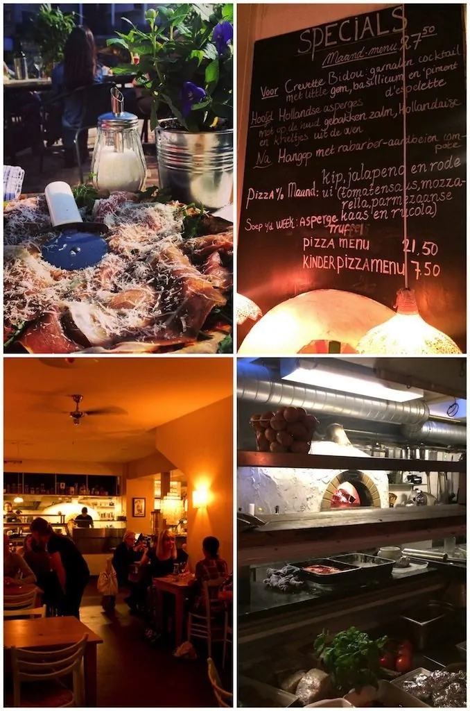 De kaart is zeer divers en toegankelijk. Er wordt gekookt met seizoensproducten en dat zorgt voor een frequent wisselende kaart. Je kunt daarnaast kiezen voor het menu van de maand, 3 gangen voor € 27,50 of het pizzamenu voor € 21,50. Er is ook altijd een pizza van de week. Toen wij er waren was dit een pizza met kip, jalapeño en rode ui. Die pizza’s zijn trouwens niet mis. Bij mijn voorgerecht heb ik ook nog een stukje margherita gegeten en die smaakt me echt goed. Dat is het leuke van deze zaak. Je kunt er uitgebreid dineren of ‘gewoon’ alleen even een pizza eten met een salade erbij. De prijzen van de pizza’s variëren van € 8,75 tot € 14,50. Aan de kinderen is trouwens ook gedacht met een kinderpizzamenu voor € 7,50. Ze mogen dan zelf hun pizza maken (hoe leuk!) en krijgen er een glas limonade bij en toe een perenijsje.