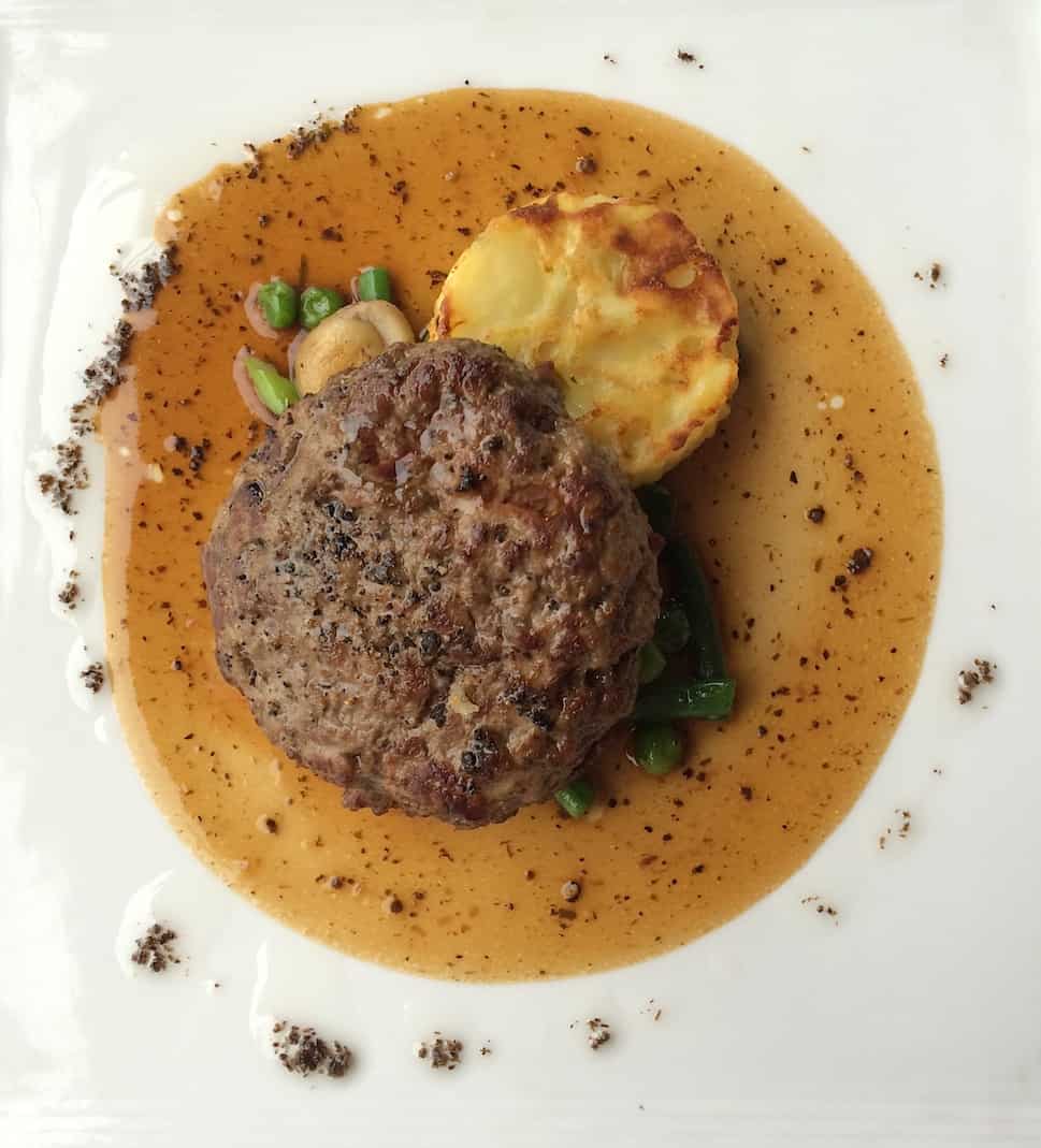 Na even een kleine pauze op het terras buiten te hebben genomen, namen we weer plaats aan tafel voor het hoofdgerecht. Deze wagyu burger met truffeljus, sjalot rosevaltaartje en beukenzwammen was om van te smullen. De portie van het vlees was binnen dit menu perfect, maar het aardappeltaartje had van mij iets groter mogen zijn. Wellicht dat er veel mensen niet graag rollend naar buiten gaan als ze uit eten gaan, maar daar ben ik er wel eentje van.