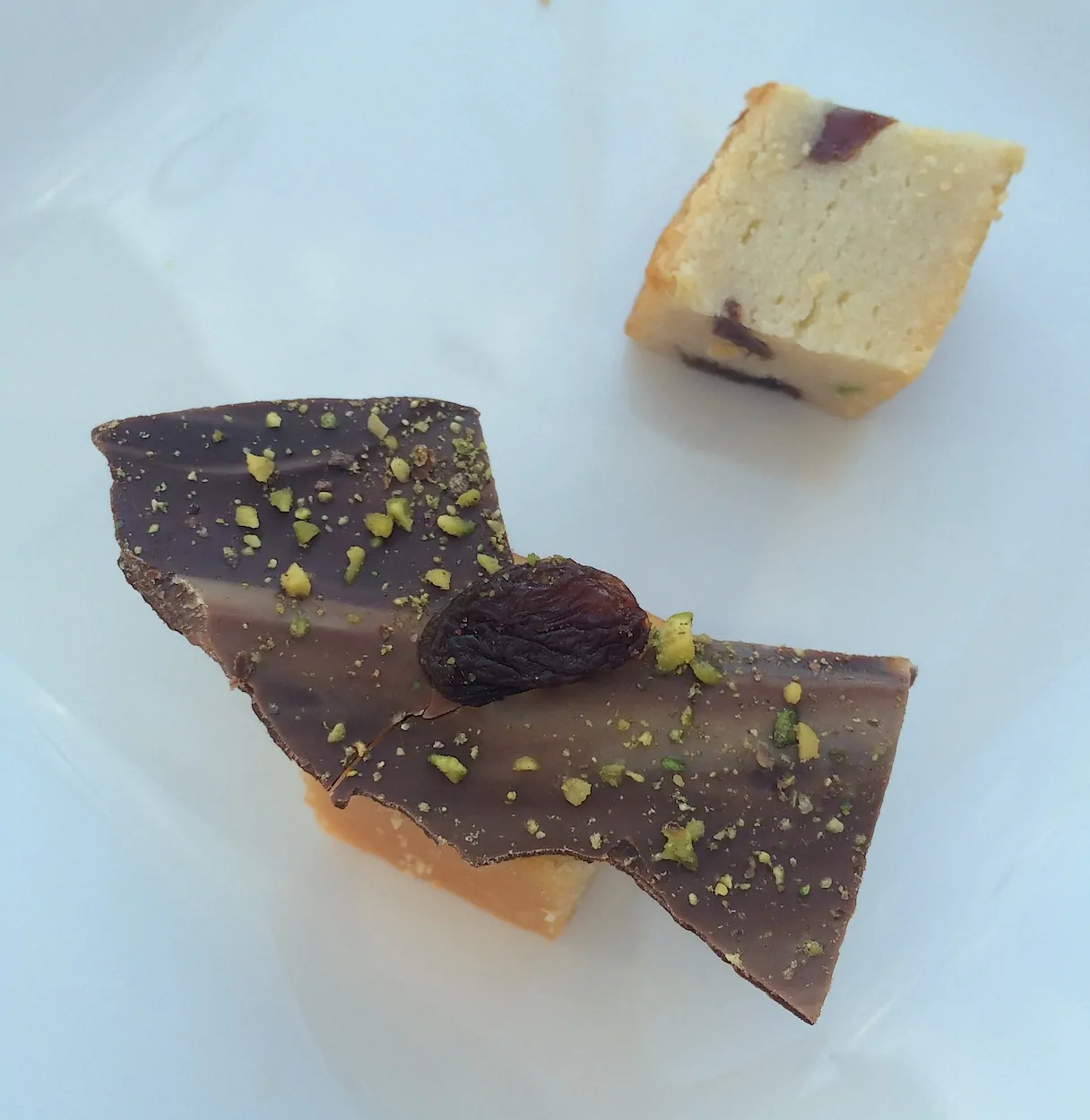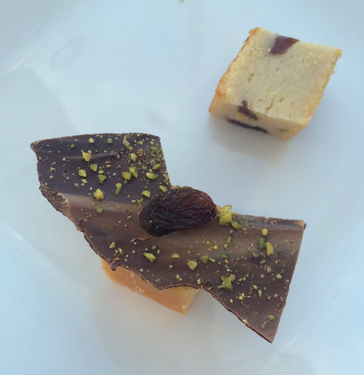 Als afsluiter van het menu kregen we een espresso met friandises, bestaande uit een chocolaatje en een stukje boterkoek.