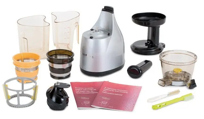 Ik maakte dus kennis met Versapers en mocht de slowjuicer thuis uitproberen. Bij het uitpakken van de verpakking viel me gelijk op dat ik hier te maken had met heel veel meer onderdelen dan normaal. Het was even puzzelen (ik ben niet zo technisch), maar na een paar keer proberen is het een eitje om ‘m in elkaar te zetten.