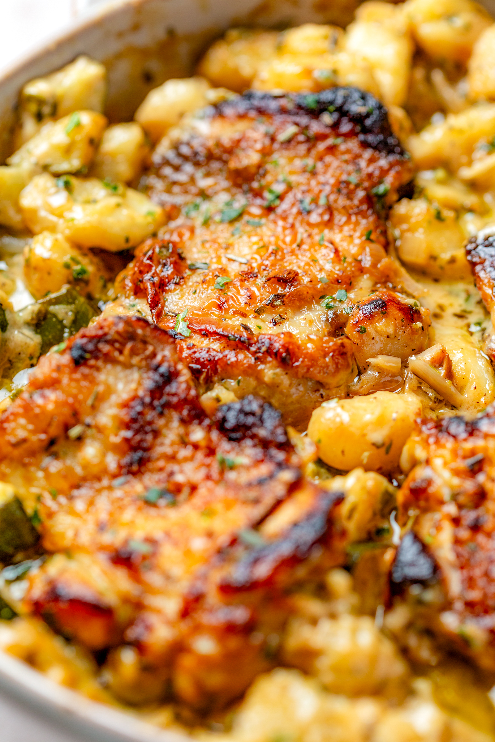 Romige gnocchi uit de oven met geroosterde rozemarijnkip