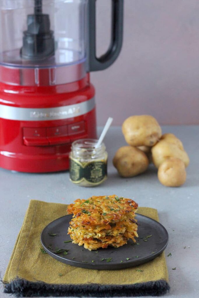 Maar nu is dan eindelijk het verlossende antwoord gekomen op mijn uitdaging, want sinds kort heeft KitchenAid een foodprocessor op de markt gebracht met een inhoud van 1,7 liter. Compact, krachtig, multifunctioneel en heel betaalbaar. De prijs bedraagt namelijk slechts € 129,- en dat vind ik zeer schappelijk voor alles wat je krijgt. Ik heb uiteraard de foodprocessor uitgebreid getest voor jullie en hieronder lees je er alles over. Het artikel eindigt met het recept van de heerlijke rösti rondjes met truffel.