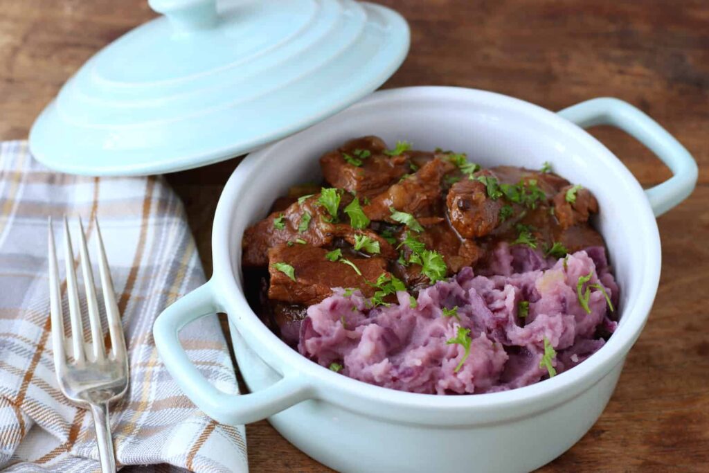 Samenwerking – Ik kan altijd genieten van een goede runderstoof, zeker in combinatie met patat (of friet). Maar op de een of andere manier raak ik altijd teleurgesteld van een patatje stoof, omdat de patatjes er zo zacht van worden. Dus ik vond het tijd worden voor een upgrade en