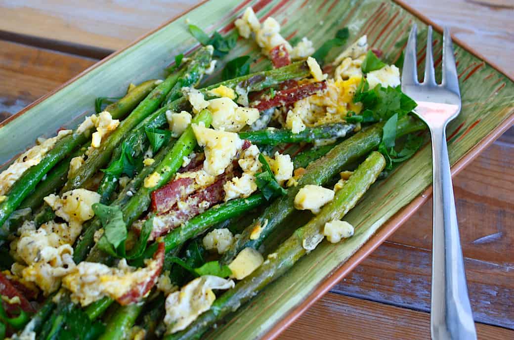 Vandaag staat er een simpele salade met groene asperges op het menu die heerlijk is als lunch of voor op de paasbrunchtafel. Ik zou het ook nog als ontbijt kunnen eten, maar daar zijn de meningen over verdeeld 😉 Dit gerecht ontstond door restjes die ik nog in de koelkast had liggen en ik ben blij dat ik daarmee aan de slag ben gegaan. De knapperige groene asperges, romige ei en pikante blauwe kaas combineren bijzonder goed met elkaar.