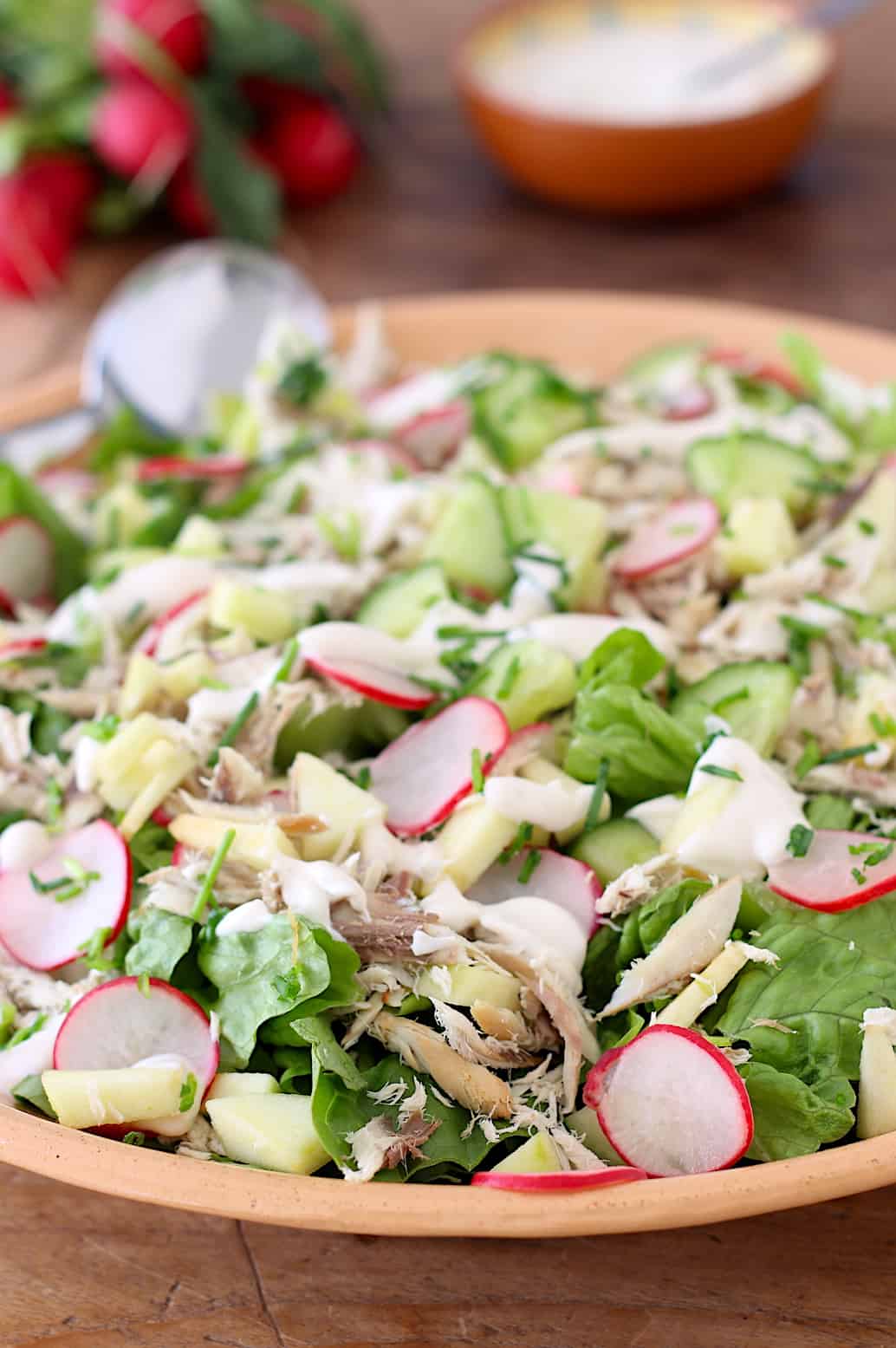 Daarom heb ik een beetje geschoven in de planning en komt er vandaag een heerlijke, frisse salade online! Een salade met makreel, appel, radijs en yoghurtdressing om precies te zijn. Een top gerecht voor warme dagen. Geniet ervan.