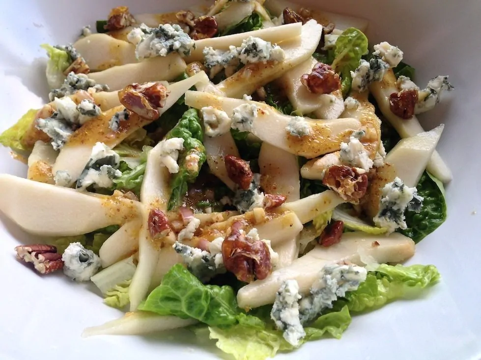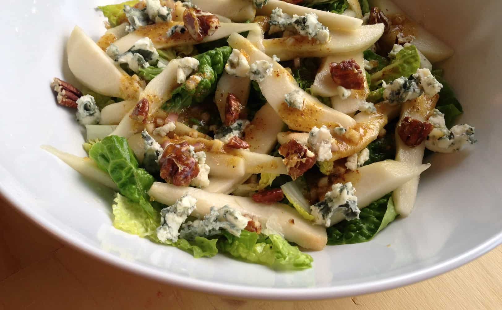 Ik ben dol op salades, het hele jaar door. Nou lijkt het misschien alsof het in de lente en zomer makkelijker is om een salade in elkaar te draaien. Maar niet is minder waar. Ook in de herfst en winter zijn er tal van verse seizoensproducten te verkrijgen waarmee je heerlijke salades kunt maken. Een van mijn favoriete ‘herfstige’ salades is een salade met peer en roquefort. Een klassieker die met deze twist helemaal eigen is gemaakt. Er zijn namelijk gekarameliseerde pecannoten aan toegevoegd. Je kunt er mee lunchen, maar je kunt het ook serveren als een voorgerecht. Serveer de salade dan op mooi opgemaakte bordjes.