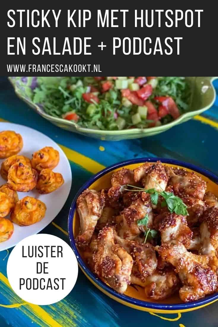 - Serveer de sticky kip samen met de hutspot rozetjes en salade.