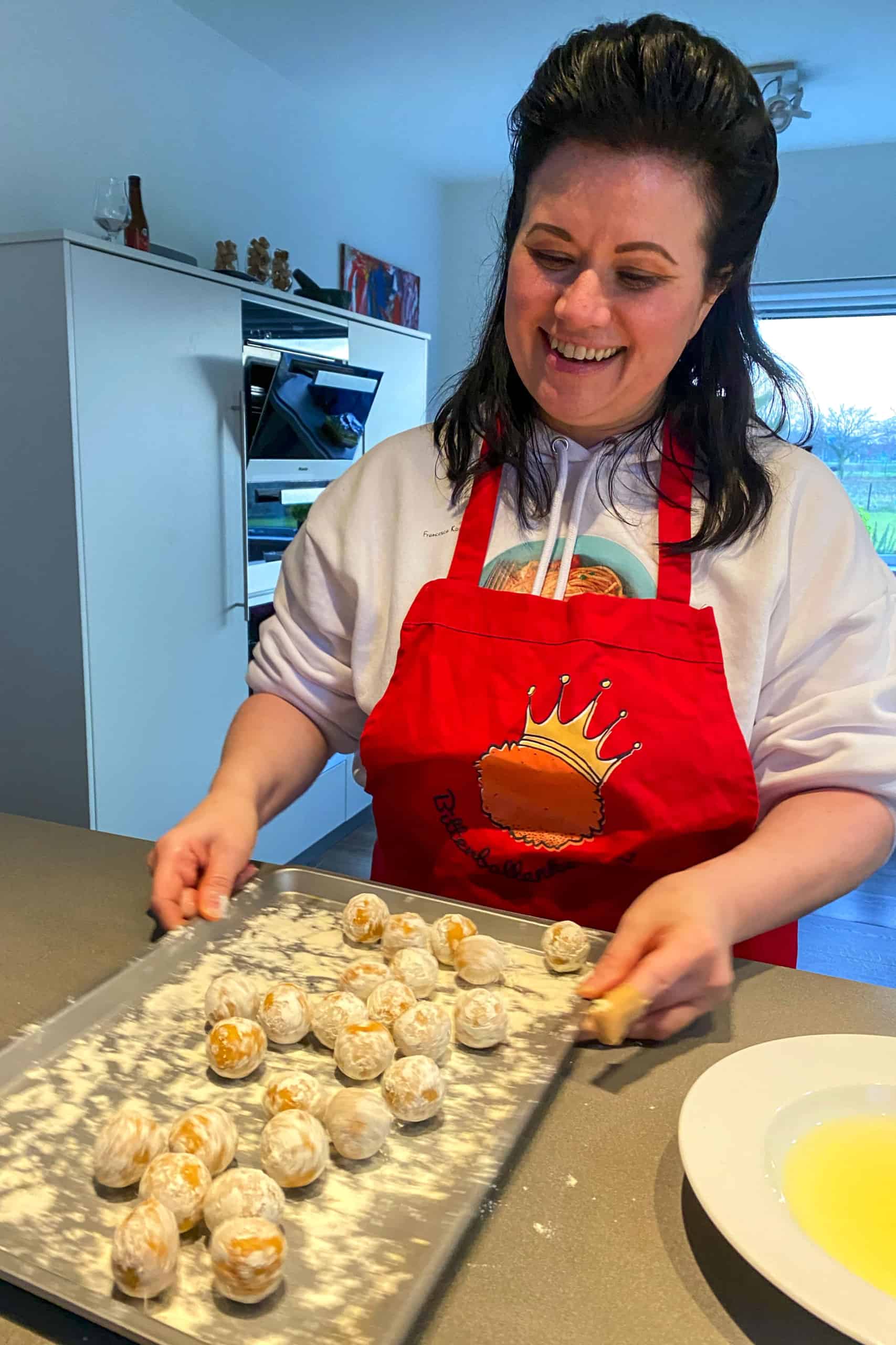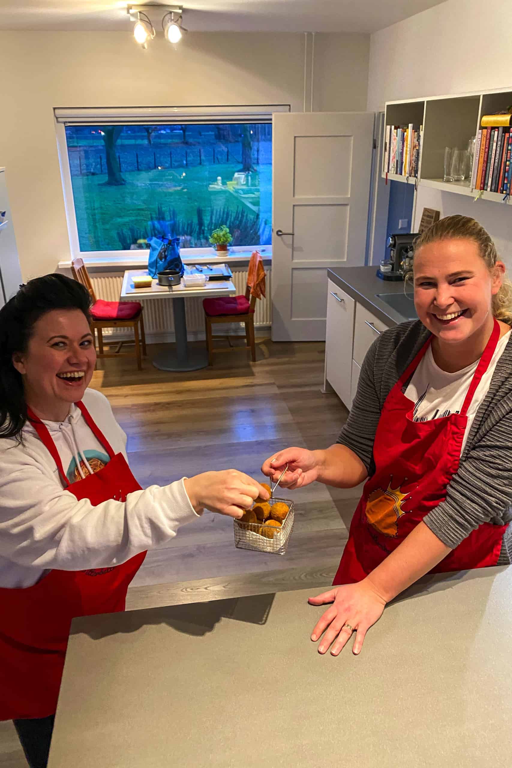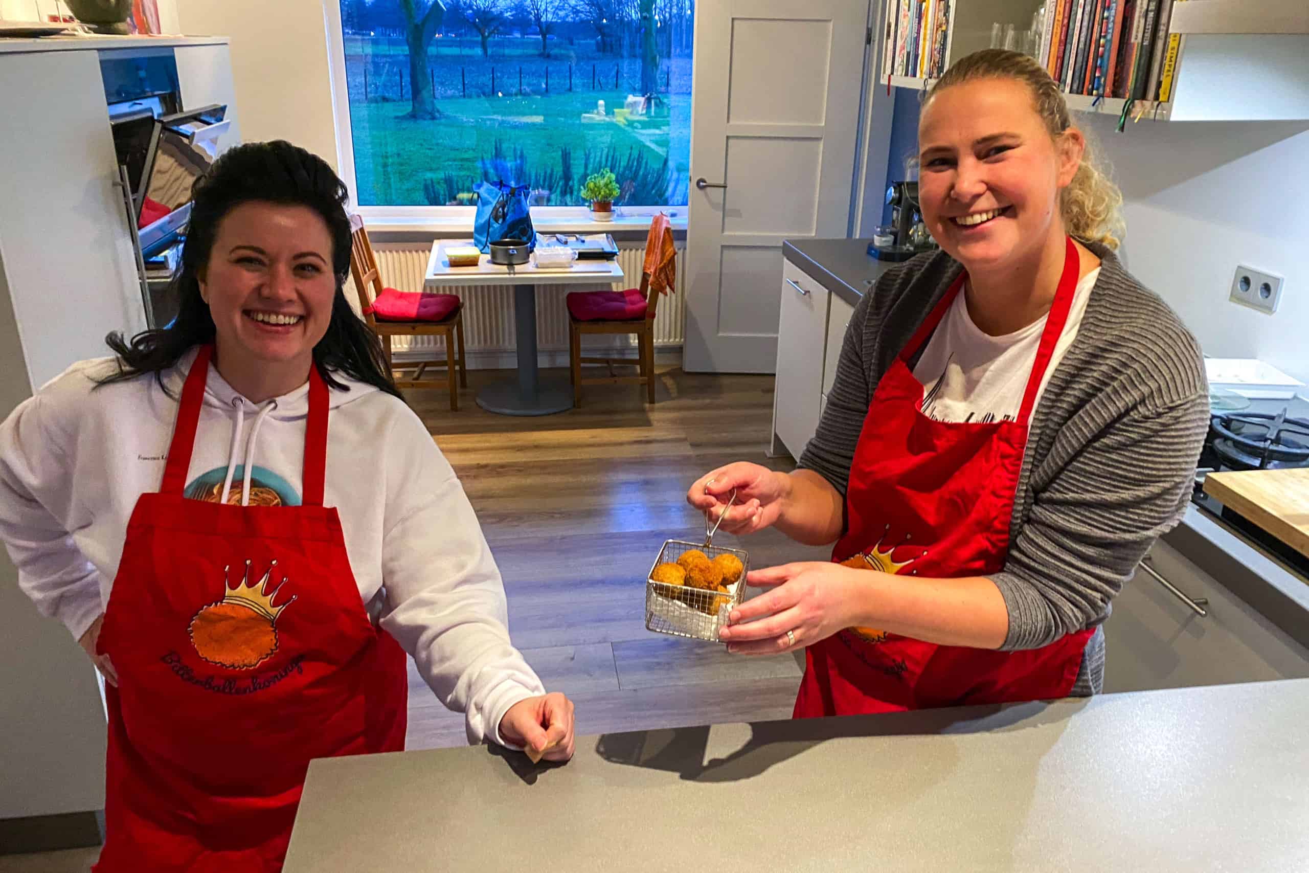 Ik vond het reden genoeg om naar Tilburg af te reizen om samen met de goedlachse Ilona bitterballen te maken. Ze leerde me alles over het maken van de vulling (oftewel de salpicon), portioneren, rollen, paneren en bakken van de bitterballen. Die natuurlijk niets anders zijn dan kroketten, maar dan in een ronde vorm waardoor ze perfect zijn om te eten bij de borrel of tijdens een feestje. Dat laatste doen we al even niet meer, maar dat is geen reden om minder bitterballen te eten wat mij betreft.