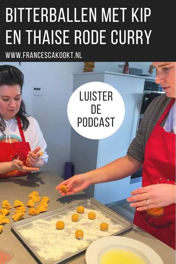 En wat blijkt nou, het maken van bitterballen is helemaal niet ingewikkeld. En je wordt er ook nog eens blij van. Luister lekker mee naar mijn nieuwste podcast die helemaal gaat over bitterballen! En waarin we natuurlijk ook bitterballen hebben gemaakt: de Thaise rode curry bitterballen met kip. Het recept vind je helemaal onderaan deze blog.