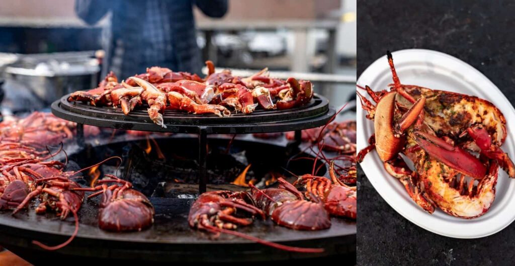 - Bestrijk de gehalveerde kreeft met knoflookolie en grill circa 5 minuten op de barbecue (of een grillpan).