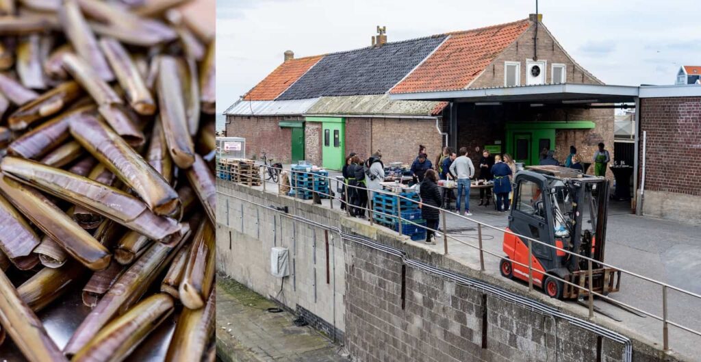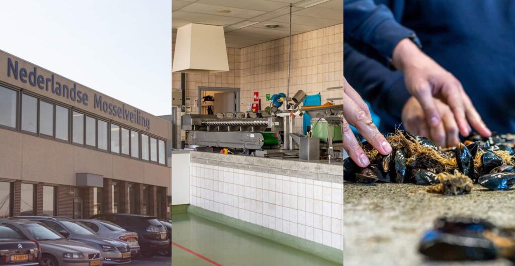 We begonnen de dag op de mosselveiling, een bescheiden gebouw in de haven van Yerseke. Hier worden alle mosselen door middel van samples van elke boot gekeurd. Er wordt hier gewassen, getikt, gewogen en gekookt. Gek genoeg wordt er niet geproefd. De mosselen gaan in een bakje met water die rijen dik langs elkaar komen te staan, zodat er goed gezien kan worden hoe de kleur en grootte is. Deze informatie vormt samen met alle bevindingen van de keuring eerder de basis van de veiling.