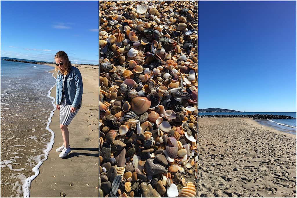 De allerlaatste, maar zeker niet minste, reden om Sète te bezoeken is het strand. Langs de 12 kilometer lange kustlijn vind je namelijk een prachtig strand. Het is een beschermd gebied dus je vindt er niet veel behalve zand, schelpen en de Middellandse zee. In de zomer worden er strandtenten opgezet, die heb ik zelf niet gezien maar wel vernomen dat je daar ook lekker kunt eten en er ook veel muziek wordt gespeeld. Daar moet ik nog maar eens voor terugkomen dan!