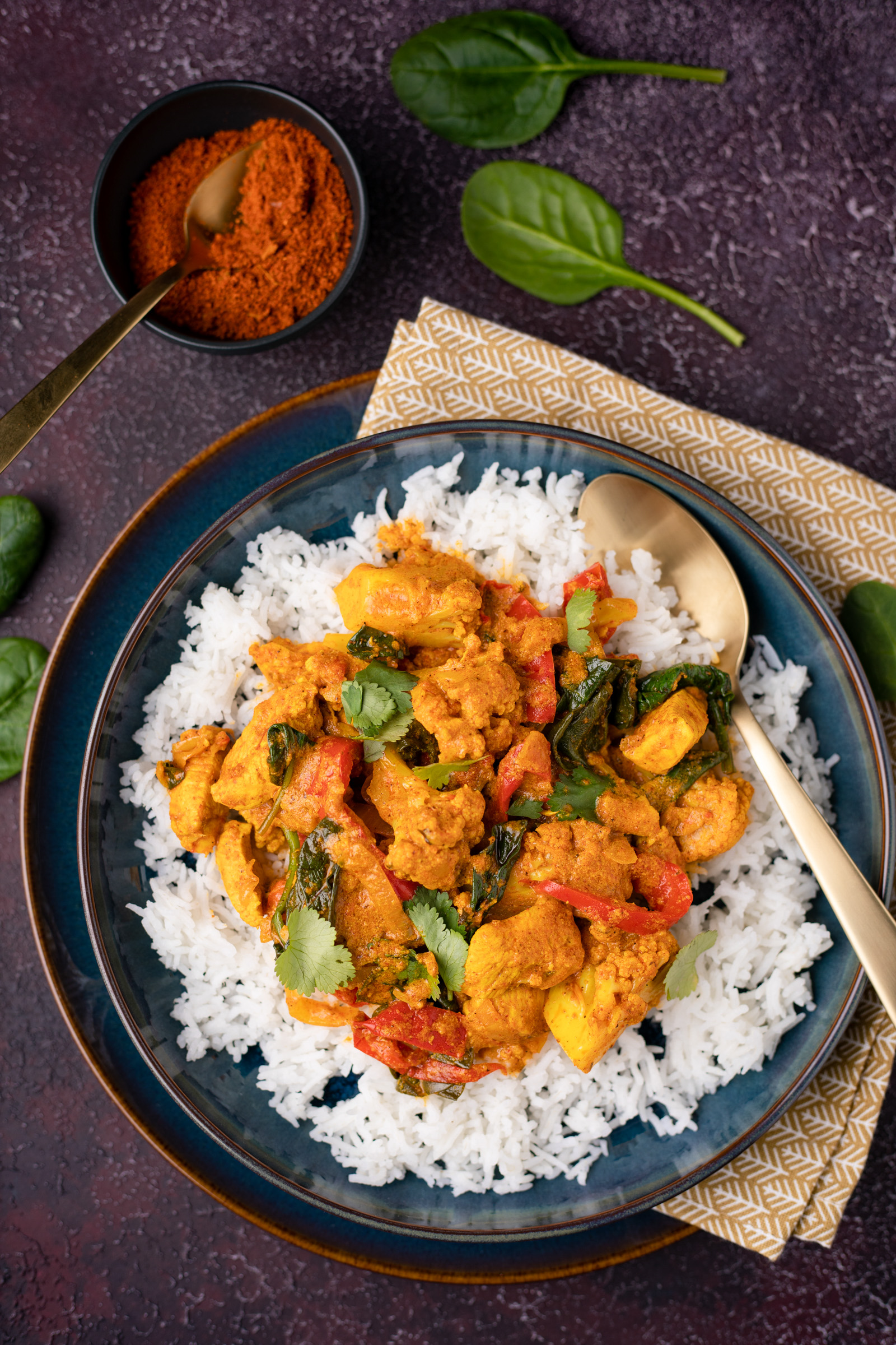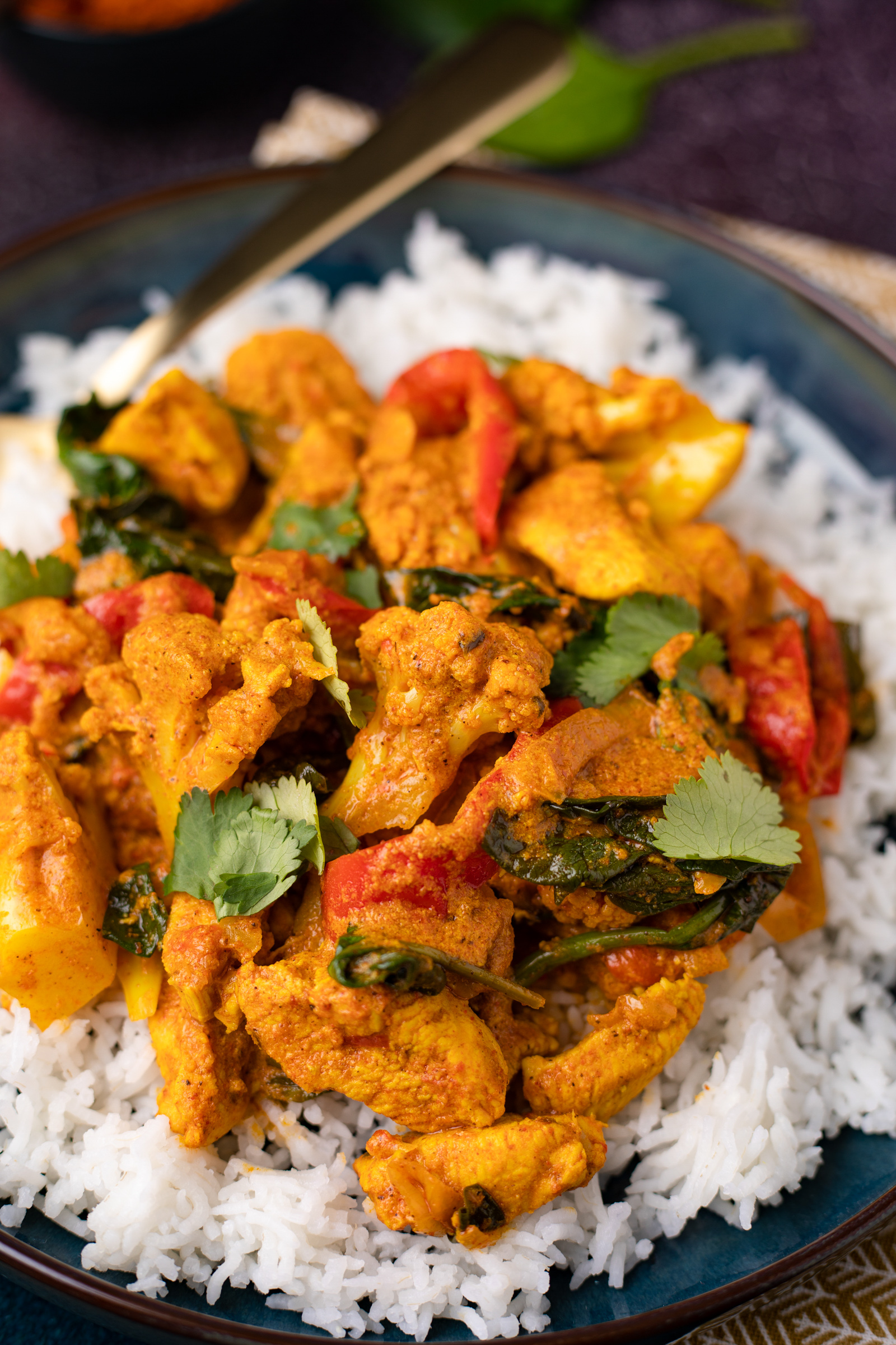 Dit is mijn variatie op de traditionele kip tandoori die wij doordeweeks graag eten. Snelle tandoori curry met kip dus, waar ik ook nog extra groenten aan toevoeg zoals bloemkool en paprika.