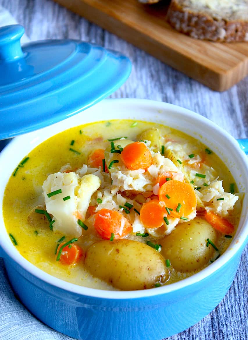 Ik had zin in een stoofgerecht maar niet zo’n zin in vlees. Ik besloot daarom eens een stoofgerecht te maken met vis, weer eens wat anders! Het fijne daaraan is dat het veel sneller klaar is. De vis is binnen 5 minuten namelijk al heerlijk zacht en gaar. Combineer dat met wat verschillende groente, krieltjes en smaakmakers als ui en knoflook en je hebt zowaar een simpele maar oh zo heerlijke visstoof op tafel. Ultiem comfort food wat mij betreft.