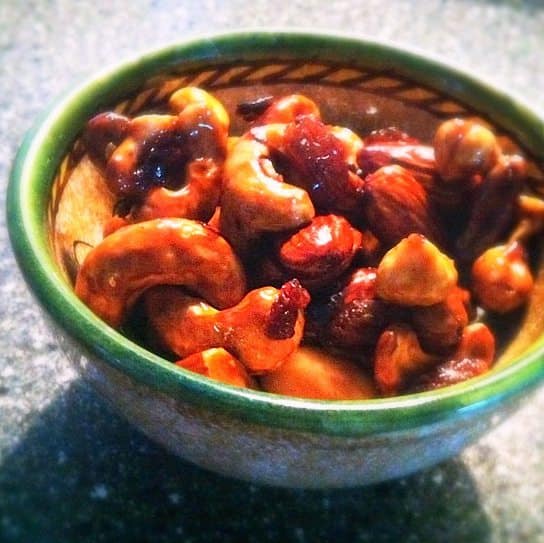 Soms heb je gewoon even zin om te snoepen. Het liefste zo’n enorme reep chocola of een zak chips en dan languit op de bank. Ik ken dat. Maar aangezien er kilo’s af moeten in plaats van bij, zoek ik naar verantwoord snoepgoed. En dan heb ik het niet over een appel, die valt voor mij niet in de categorie ‘snoepen’. Tijdens mijn vakantie zag ik een fantastisch recept in de Delicious staan voor sweet/spicy nootjes uit de oven. Deze zijn gelijk uitgeprobeerd en ze zijn nog lekkerder dan ik dacht, snoepen maar!