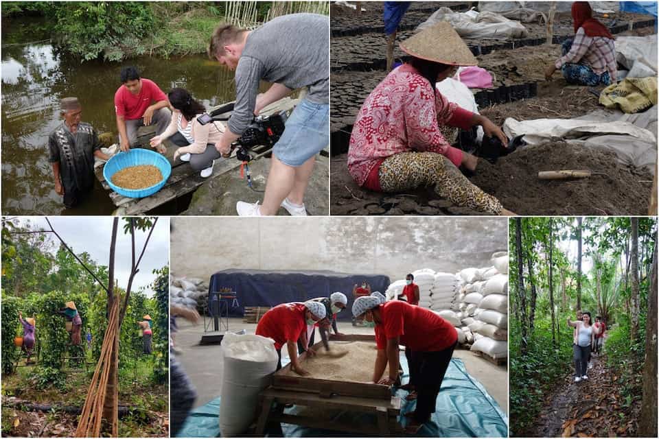 Samenwerking ā Na twee dagen filmen op Sumatra, zalig eten en acclimatiseren in het Indonesische klimaat was het voor ons alweer tijd om naar het volgende eiland te reizen. Deze keer was Bangka aan de beurt, waar we met onze neus in de witte peper vielen. Nou vraag je je wellicht af, net zoals ik dat deed, waarom we voor deze peper helemaal naar een ander eiland moesten vliegen. Want of het nou zwarte of witte peper is, het begint allemaal met dezelfde groene peperkorrel. En die groeit gewoon op Sumatra, waar we al waren…