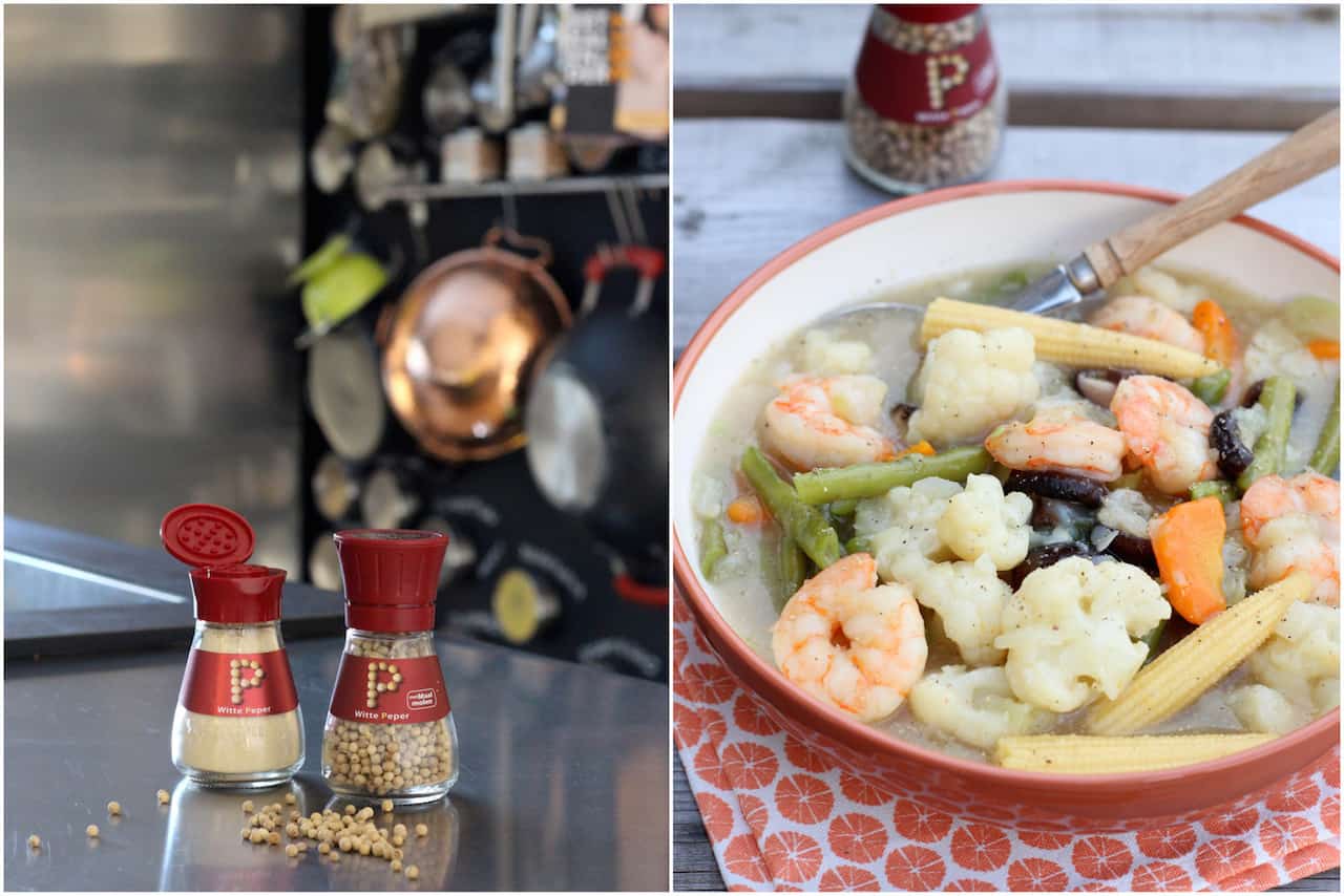 - witte peper (in de supermarkt kun je de witte peper van Verstegen in een molentje of reeds gemalen kopen)