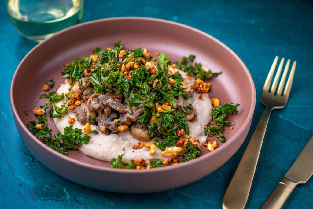 5. Schep het gerecht over in een grote schaal en maal er nog wat witte peper over.