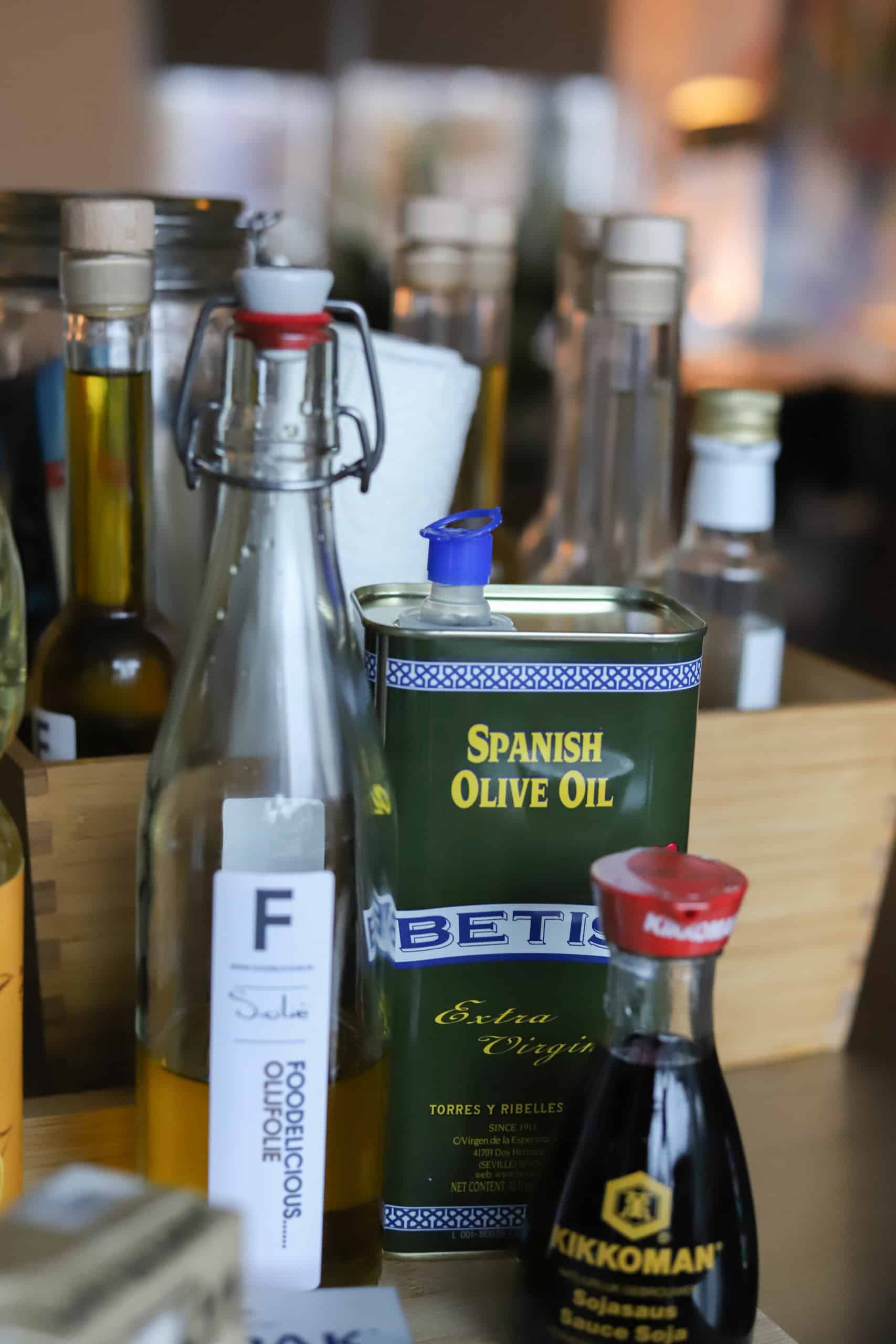 - Olijfolie! Er is maar één adres waar ik die koop en dat is bij Foodelicious. Als bakolijfolie gebruik ik de groene blikken van Betis. Qua olijfolie extra vergine heb ik er verschillende in huis. Mijn favorieten zijn de Sicilië Novello en de Portugese uit de Douro. De truffelolie met echte witte truffel heb ik ook altijd in huis.