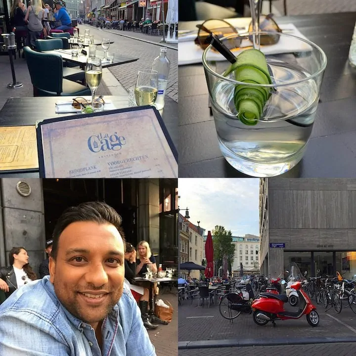Ze hebben het bij La Cage goed voor elkaar. Een mooi interieur, goede bediening, fijne kaart en geen bla bla. Gewoon eten, drinken en dansen. Zo simpel kan het zijn, zeggen ze er zelf van. Dat drinken en dansen slaan we op deze donderdagavond even over. De zon gaat onder in mooi Amsterdam en wij wandelen gelukkig terug naar onze auto.