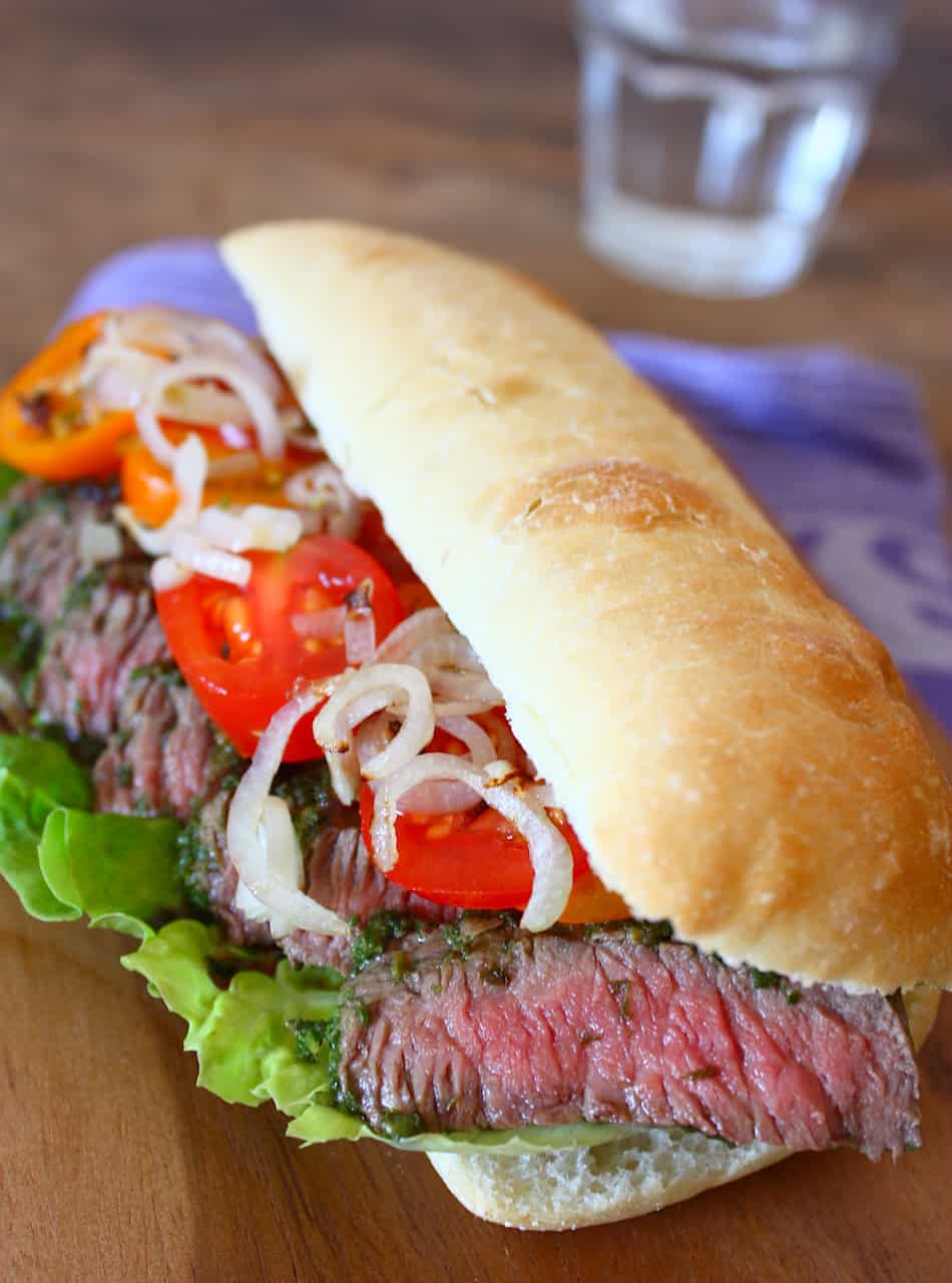 Ik ga mezelf vandaag eens flink kwellen met dit steak sandwich recept. Sinds ik zwanger ben, zijn er weinig dingen die ik echt mis qua eten. Sterker nog, er zijn meer dingen die je wel kunt eten dan dat je moet laten staan. Maar wat ik wel mis is af en toe een rosé gebakken biefstuk met een snufje zwarte peper en zeezout. Ik ben niet meer zo’n carnivoor als vroeger, we eten thuis ook veel minder vlees. Maar als ik het eet, dan doe ik het ook gelijk goed. Jullie begrijpen dat dit recept voor steak sandwich al een tijd stond te wachten om gepubliceerd te worden, aangezien ik al ruim 5 maanden geen rood vlees meer heb aangeraakt. En de enige reden waarom ik het vandaag met jullie deel is omdat ik vannacht over een gebakken biefstuk heb gedroomd. Met een goed glas rode wijn erbij. Daar doe ik verder niets mee, maar laat je door mij niet tegenhouden dit weekend. Ik zou het wel weten.