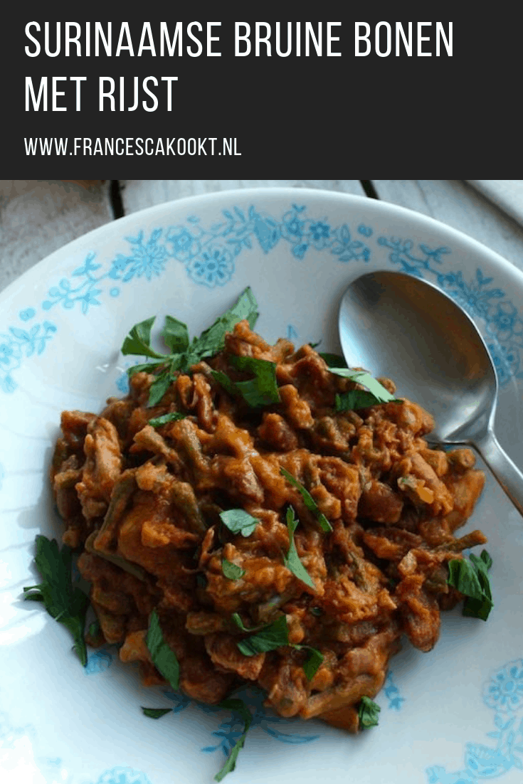 Men neme een grote pot Hollandse bruine bonen, voegt daar wat typische Surinaamse ingredienten aan toe. Kookt daar natuurlijk een potje rijst bij en krijgt zo een van onze favoriete gerechten thuis: Surinaamse bruine bonen met rijst. Of eigenlijk BB met R, zoals de Surinaamse zanger Max Woiski sr. het had afgekort in een van zijn liedjes in de jaren vijftig.