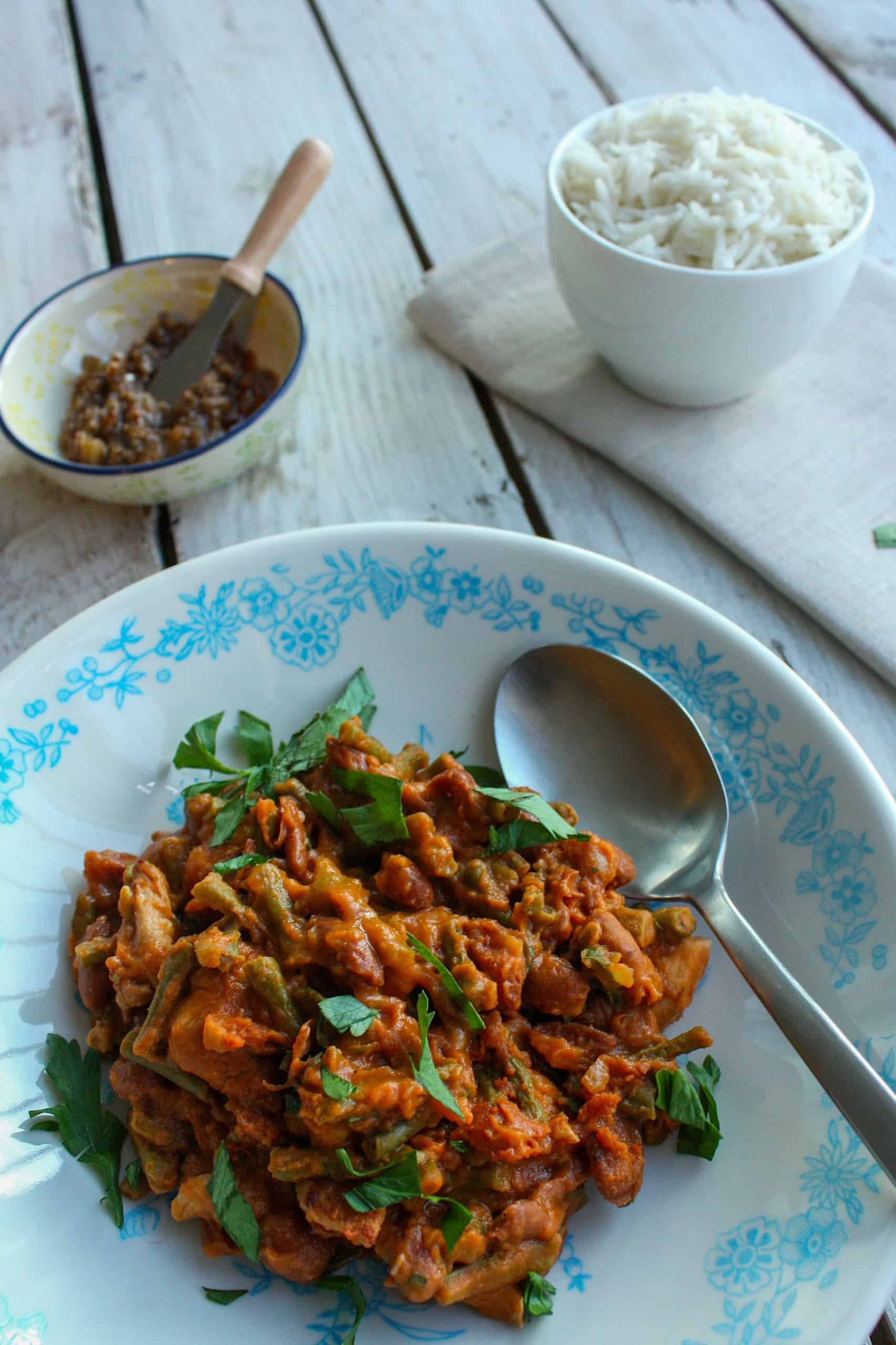 Serveer de BB met R met witte rijst en een komkommersalade. Of nog lekkerder, met zuurgoed, bijvoorbeeld komkommer en rode ui uit het zuur. En vergeet de sambal niet 🙂