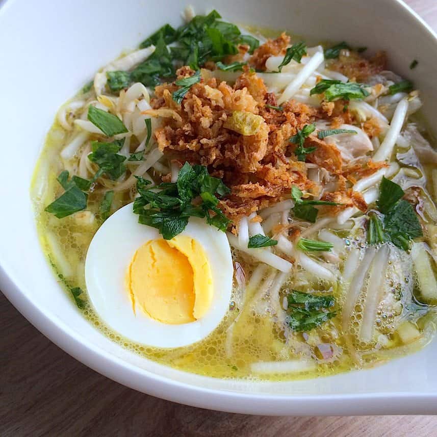 [vc_row][vc_column][vc_column_text]Het is niet heel gek dat ik in het weekend van Vaderdag het recept voor saoto soep met jullie ga delen. Want mijn Mr. houdt net zoveel van saoto soep als van zijn auto. En dat zegt genoeg. Hij is daarin niet de enige. Saoto maak ik dan ook altijd in eenheden van 10 liter, want zodra die pan op het vuur staat komen er vanzelf allerlei mensen naar je huis voor een kommetje. Die 10 liter is zo op.
