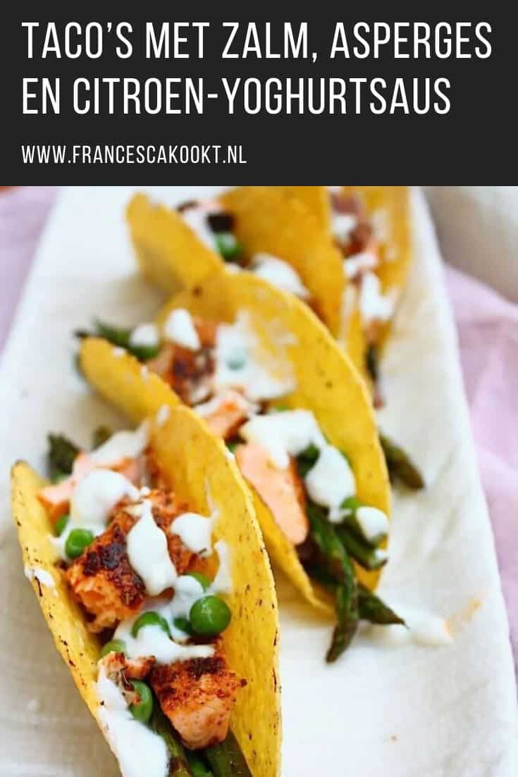 Met het lekkere weer van afgelopen week had ik zin in een lekker simpel, fris en typisch lente gerecht. Dus heb ik allemaal frisse smaken en seizoensgroenten verzameld om mijn Tex Mex feestje te houden. Ik koos voor krokante taco shells en vulde deze met groene asperges, doperwten, rode ui en zalm. De zalm kruidde ik met de enchiladas specerijen, waar traditionele Mexicaanse kruiden in zitten zoals oregano en koriander. Het heeft daarnaast ook nog eens geen gekke toevoegingen, maar bevat echt alleen de pure kruiden én het paste super goed bij de zalm.Â