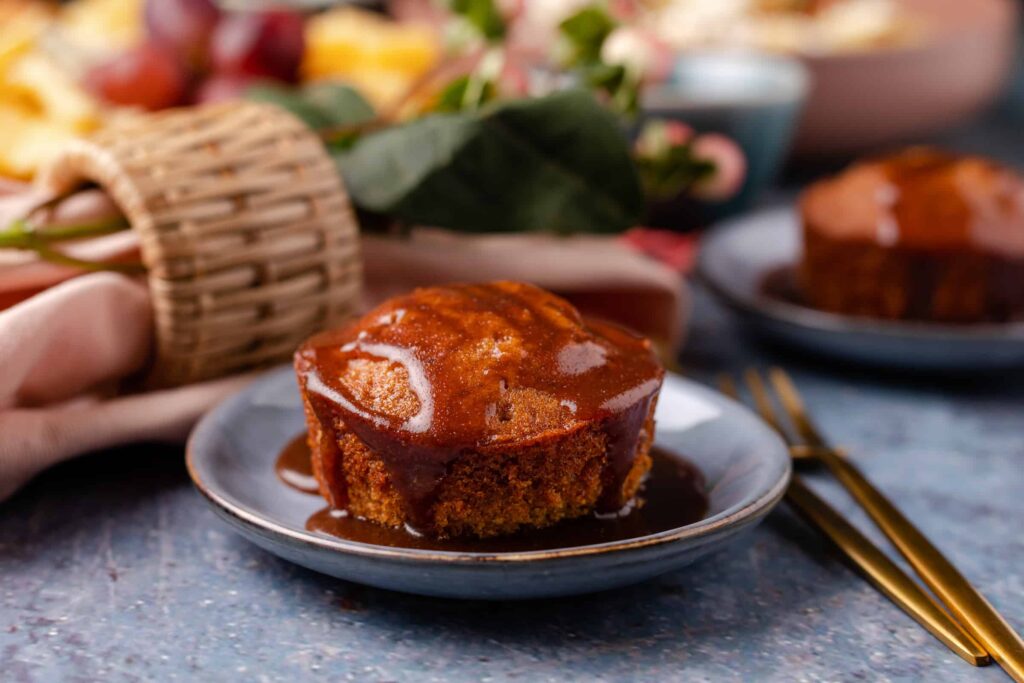 Een sticky toffee pudding maak je van dadels en het is een heerlijk smeuïge cake die overgoten wordt met een toffeesaus. Ook daar kun je prima een kleine versie van maken en dat is precies wat ik gedaan heb voor dit tapas kerstmenu. En oh, wat was deze mini sticky