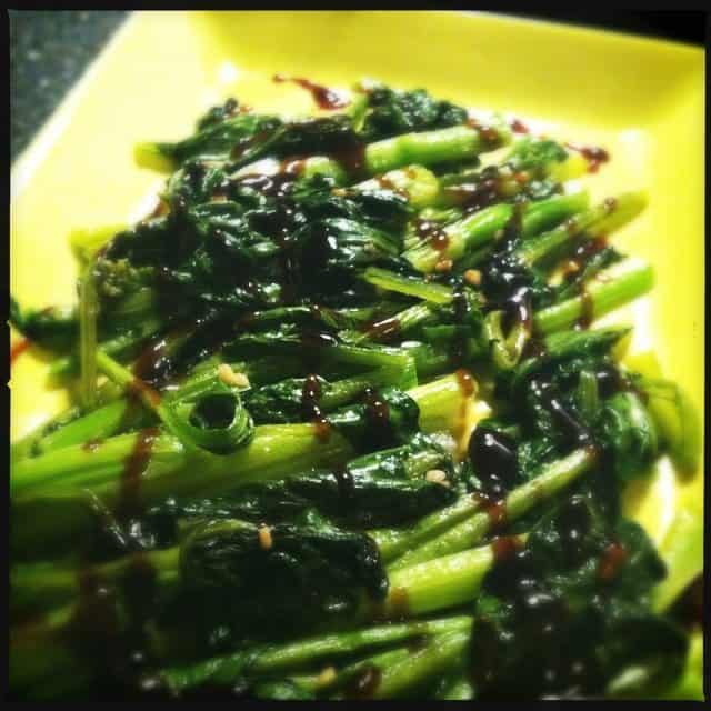 Spinaziesalade met paddenstoelen, paksoi en tofu