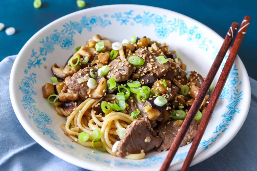 Afgelopen week konden jullie mijn tips voor het wokken lezen en vandaag maak ik de tips compleet met een heerlijk wokrecept! Deze biefstuk uit de wok met shiitake, aubergine en noedels is een van mijn favorieten om thuis te maken. Snel bereid, goed op smaak en met een goede balans