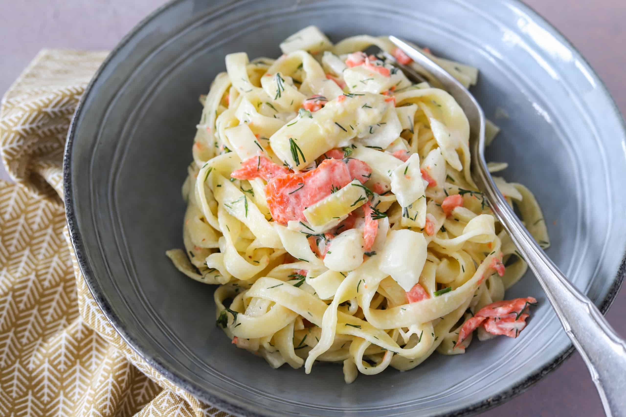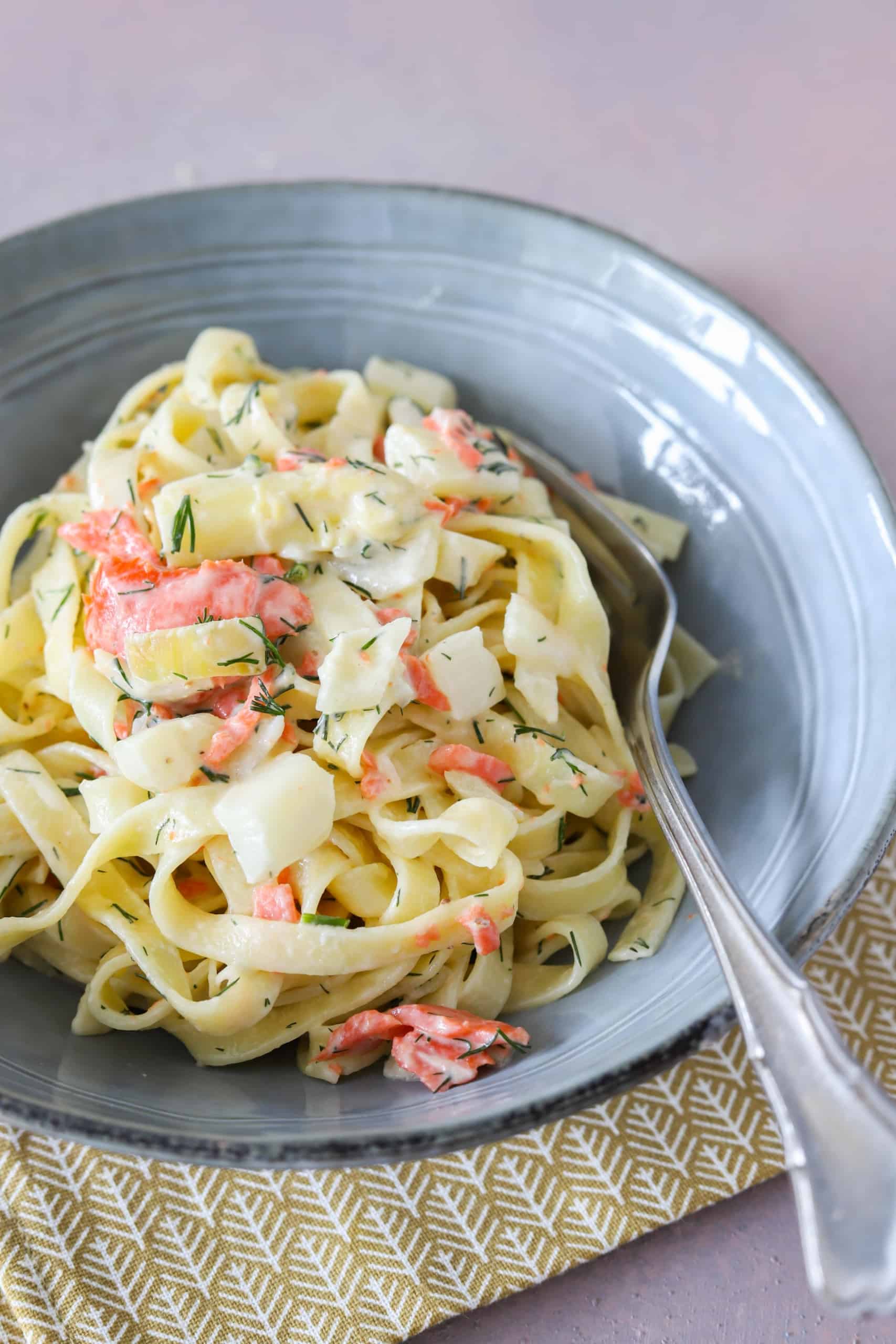 - Serveer de tagliatelle met asperges, dille en gerookte zalm direct. En geniet!