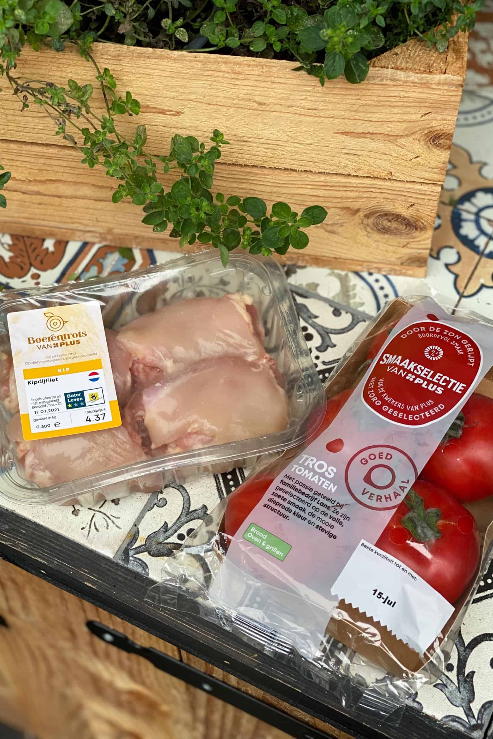 Voor de trostomaten adviseer ik altijd de PLUS Smaakselectie tomaten, die zijn echt top! Verder heb je onder andere eieren, wortel, aardappel, doperwten en wat specerijen nodig. Valt reuze mee eigenlijk voor zo’n zalige tajine met kip.