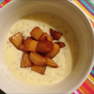 Serveer de pudding warm met een schepje gebakken mango erop. Geniet ervan!