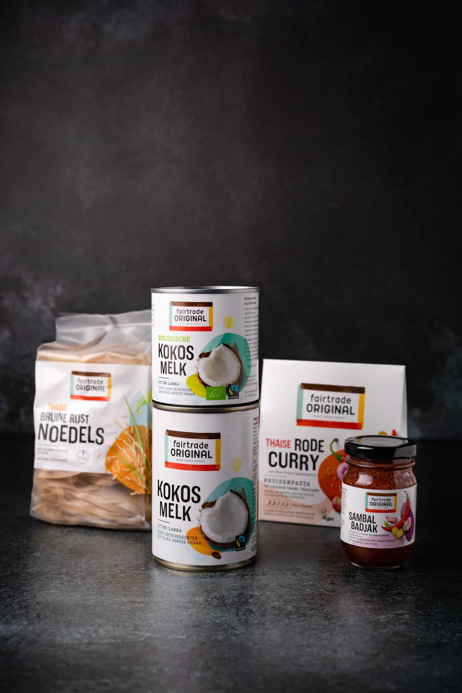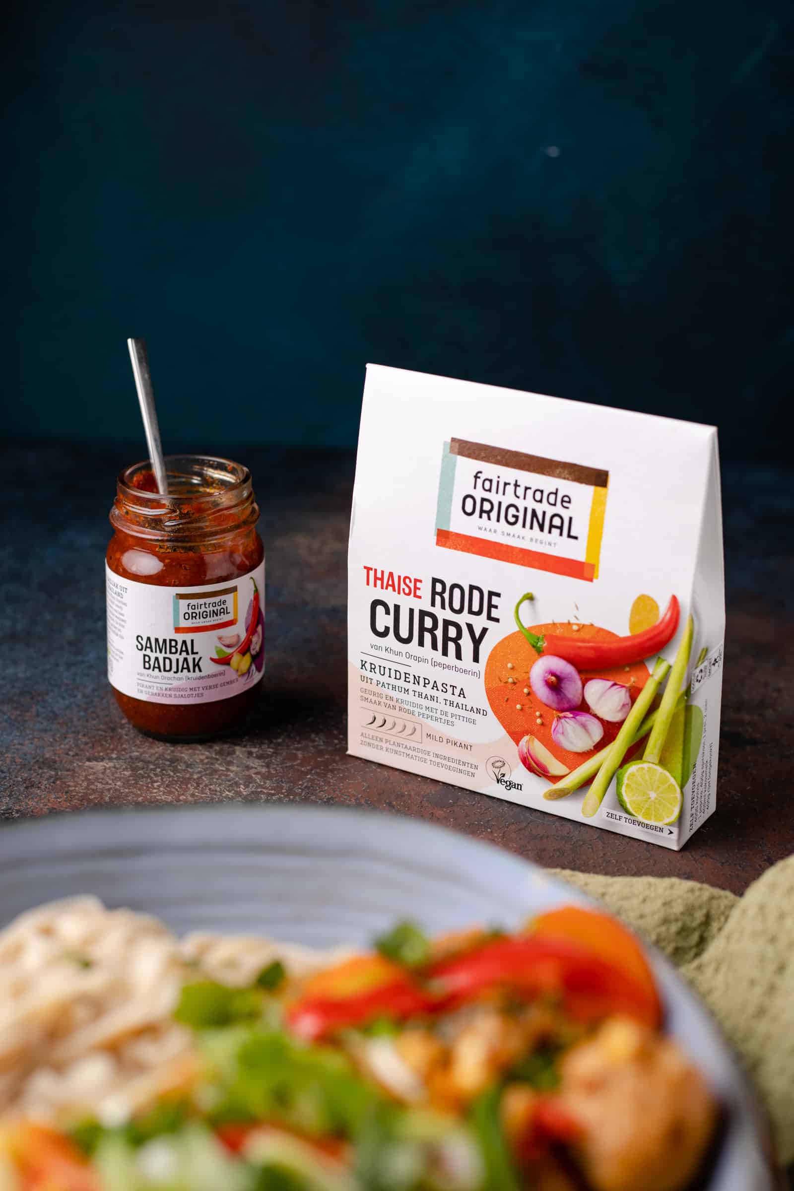 - 1 pakje Fairtrade Original Thaise rode currypasta, hun gele currypasta kan ook
